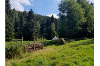 Ik bied zeer rustige tentplaatsen aan de rand van de verspreide nederzetting Rübenau, direct aan de Tsjechische grens. Iets verderop is er ook een camperplaats. Het droogtoilet, de vuurplaats en de wasruimte worden gedeeld. De tentplaatsen bevinden zich op een bergweide onder bomen, direct aan de grensbeek. De vrij te kiezen plaatsen zijn omgeven door bomen en struiken (vrije keuze van plaatsen op plaatsen waar geen hoog gras groeit). Rondom bevinden zich biodiverse natuurgebieden en beschermde natuurgebieden. De dichtstbijzijnde huizen liggen op enkele honderden meters afstand en de plaatsen zijn vanaf daar niet zichtbaar. De toegang is via een openbare weg en een pad. De Kammweg (kwaliteitswandelpad) ligt op 10 minuten loopafstand. Tafels en stoelen, een vuurplaats met een vuurschaal en brandhout (gratis, gebruik op eigen risico - brandveiligheid!), de oever van de beek om te wassen/baden en een droogtoilet op de steenberg zijn beschikbaar (zie boekingsinformatie voor de legenda). De omliggende gebieden zijn gewijd aan natuurbehoud en kunnen worden bezocht, maar wees voorzichtig. Er is ook een privétoilet/gereedschapsschuur en een eigen circuswagen bij de kampeerplaatsen, die niet gebruikt mogen worden. Boven de steengroeve heeft u een prachtig uitzicht op het dorp Rübenau ('s avonds zonnebank, toegang op eigen risico).