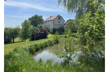 Plattelandslucht, een historische boerderij of gewoonweg een paradijs op aarde? U vindt het hier. Geniet van een heerlijke tijd in het aangelegde park van ons landgoed. Het 2 hectare grote terrein wordt op natuurlijke wijze beheerd en omvat bronvijvers, bos, boomgaarden, beekjes en een oase waar u heerlijk kunt ontspannen. De omliggende wandelpaden nodigen u uit om de velden te verkennen, over de Bielerturm naar de Fliegerkuppe, door het bos met een hoogtepad, of naar het dichtstbijzijnde stadje Orlamünde voor een rondleiding door de Kemenate (kamer) en een heerlijk ijsje. De rivier de Saale, met zijn aanlegsteiger, ligt op een uur lopen. Toiletten en drinkwater zijn beschikbaar in de buurt, direct op het landgoed en in de aangrenzende paardenstal. Informeer bij het inchecken even kort bij de familie Güther op het landgoed. We kijken uit naar uw bezoek, Christa en Max.