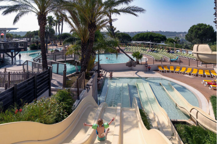 Een luxe camping aan de Côte d†™AzurGenieten van wellness, zwembaden en een prachtig uitzicht op de Franse Rivièra. Dat is een goede omschrijving van je verblijf op Camping Sandaya Domaine Du Colombier. Deze vijfsterrencamping in Fréjus is een leuke bestemming voor gezinnen met kinderen. Als volwassene kom je er optimaal tot rust, maar er zijn ook veel mogelijkheden voor kinderen. Denk bijvoorbeeld aan een animatieteam, speciale kinderzones en een uitgebreid zwembad. Zwemmen onder de palmbomenMidden op de camping ligt een groot lagunebad van maar liefst 3600 m². Het zwembad is voorzien van stroomversnellingen, watervallen en verschillende dieptezones. Dankzij de verschillende dieptes is het zwemparadijs geschikt voor alle leeftijden. Rondom het bad vind je ruime zonneweides met ligbedden om te ontspannen. Behoefte aan wat extra ontspanning? Dan vind je er ook een uitgebreid wellnesscentrum. Daar geniet je van een heerlijke massage of kom je tot rust in de jacuzzi. En ook het strand van Fréjus is makkelijk te bereiken met de auto of fiets. Leuke activiteiten voor jong en oudZowel voor volwassenen als kinderen valt er veel te beleven op de camping. Zo zijn er voor kinderen verschillende animatieteams. Namelijk de miniclub (5-7 jaar), de kidsclub (8-12 jaar) en de tienerclub (13-17 jaar). Houd je van sportieve activiteiten? Met de fitnesslessen, aquagym, beachvolleybal en voetbal leef je je helemaal uit. † s Avonds sluit je de dag gezellig af op het terras, met onder meer livemuziek, dansshows en andere vormen van entertainment. Genieten van de Zuid-Franse keukenOp Camping Sandaya Domaine Du Colombier vind je diverse horecagelegenheden. Voor lokale specialiteiten bezoek je het panoramisch restaurant. Meer zin in een snelle hap? Dan ben je bij de snackbar aan het juiste adres. Daarnaast vind je op de camping een pizzeria en haal je iedere ochtend vers brood en croissants bij de campingwinkel. En terwijl je op een van de ligweiden aan het zwembad ligt, kun je altijd een verfrissend drankje halen bij de loungebar. Ontdek de Côte d†™AzurDe camping heeft een gunstige ligging om de Franse Rivièra te verkennen. Fréjus heeft een historisch centrum met Romeinse ruïnes en leuke winkeltjes. Voor een mooie dagtrip bezoek je Sainte-Maxime (22 km) of Saint-Tropez (37 km). Andere noemenswaardige plekken in de omgeving zijn het parfumstadje Grasse (50 km) en de kleurrijke markt van Saint-Raphaël (6 km). In de omgeving kun je bovendien goed wandelen en kajakken. Na een avontuurlijke dag kom je eenmaal op de camping weer helemaal tot rust in het wellnesscentrum met een oppervlakte van bijna 600 m² en exclusieve toegang voor volwassenen. Zo biedt Camping Sandaya Domaine du Colombier een heerlijke combinatie van comfort, sfeer en ontspanning.