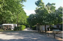 Camping Sandaya Soleil VivaraisHet gedeelte van het terrein dat vlak bij de rivier ligt, is de echte camping. Daarachter ligt 'Les Jardins', een terrein met luxe stacaravans.