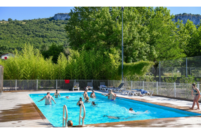 Camping bij , Aveyron in Frankrijk. Directe ligging aan de rivier. Zwembad met ligbedden. Speeltuin en multisportterrein. Huur een kano in de buurt.
