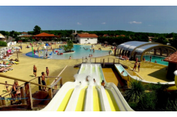 Camping OyamCamping bij , Zuid-West Frankrijk in Frankrijk. Verwarmd waterpark met glijbanen. Grote speeltuin en miniclub voor de kids. Op 1200 meter van zee en zandstrand.