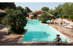 Village Parco della GallinaraCamping bij , Rome in Italië. Lagoonpool met grote ligweide en glijbanen. Direct aan 2km lang zandstrand. Padellen. Doen: dagje Rome.