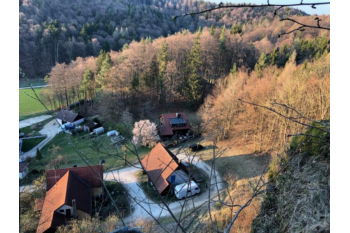 Aan de voet van de Strahlenfels. Dorpsligging met uitzicht op het klimgebied.