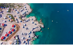Autocamp Tiha Silo Camping in de baai van Å ilo op het eiland Krk. Nieuw gedeelte bestaat uit voornamelijk kampeerplaatsen voor tenten, campers en caravans. Afzonderlijk gedeelte voor vaste staanplaatsen.