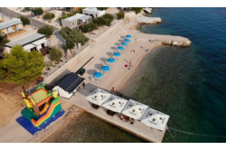 Camping Luxury homes Medora OrbisCamping bij , Dalmatië in Kroatië. Pal aan een prachtig strand met fijne kiezeltjes. Speeltuin voor de kinderen. Kristalheldere zee en bijzonder schone lucht.