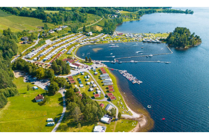 Camping bij , Zuid-Noorwegen in Noorwegen. Ontspanning in Telemark. Natuur, water en plezier. Avontuur voor het hele gezin. Vakantie direct aan het meer.
