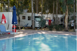 Camping Free TimeCamping bij Marina di Bibbona, Toscane in Italië. Kleine, gezellige camping aan Toscaanse kust. Speels zwembad met glijbaantje en waterval. 700 meter van het strand af. 2 visvijvers naast de camping.
