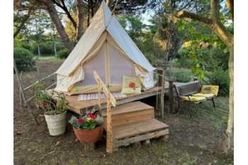 Een ronde tent met een diameter van 3 meter voor 1-2 personen in een wilde, rustige permacultuurtuin, direct aan de steile kust van Portugal. Op 8 km van de surfspot Nazaré met hoge golven en op 3 km van de beschutte zwembaai van São Martinho do Porto (geschikt voor kinderen). De tent ligt in de schaduw van grote bomen. Een composteerhok dient als toilet. Ernaast bevindt zich een nieuwe betegelde buitendouche. Tussen de bomen hangt een hangmat. Vanuit onze tuin kunt u direct langs het kustpad wandelen of naar het brede zandstrand van Salgado lopen. Onze kuststrook is ook populair bij mountainbikers en er is een startplaats voor paragliding op 1 km afstand. Het dichtstbijzijnde café en restaurants liggen op 1,5 km afstand. Honden zijn niet toegestaan. Belltent: 25€ per nacht/persoon, inclusief beddengoed en handdoeken