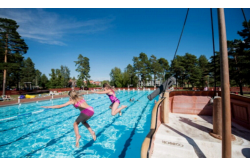 First Camp GunnarsöCamping bij , South-Sweden in Zweden. Natuurlijke zeewaterlagune met duiktoren. Animatie tijdens zomermaanden. Adventuregolf, klimparcours en kajakken. Verboot naar Gotland.