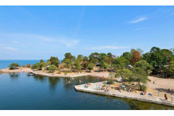 Camping bij , South-Sweden in Zweden. Natuurlijke zeewaterlagune met duiktoren. Animatie tijdens zomermaanden. Adventuregolf, klimparcours en kajakken. Verboot naar Gotland.