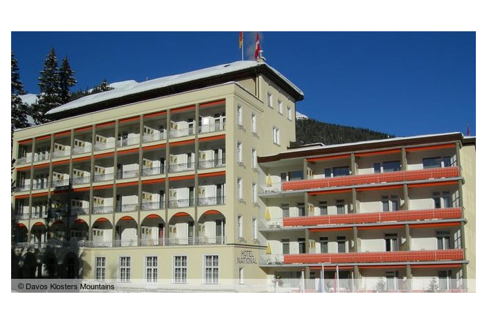 Het comfortabele 3-sterren superior hotel National ligt direct in het centrum van Davos Platz. De toegang tot het skigebied is via de op ongeveer 350 m verder gelegen lift "Schatzalpbahn" mogelijk. Het loipennetwerk op ongeveer 200 m afstand biedt langlaufmogelijkheden. Skibussen stoppen op een afstand van ca. 300 m. Het station Davos Platz bereik je na zo´n 400 m. Naar de lift rijdt een shuttle. Je kunt ook met een shuttle bij de bezienswaardige bestemming Jakobshorn komen. De dichtstbijzijnde winkels bevinden zich op ca. 300 m afstand, de dichtstbijzijnde cafés en restaurants reeds na ca. 230 m.