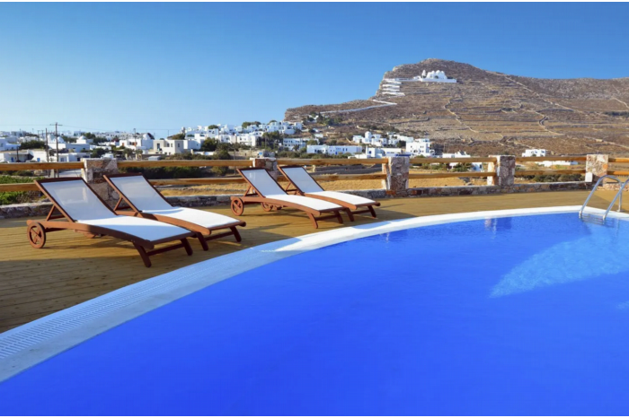 Aspalathras White hotel is wat hoger gelegen en heeft een prachtig uitzicht op het dorpje Chora en het Panagia kerkje. Na een uitgebreid ontbijt kun je genieten bij het zwembad met een sfeervolle pool-/snackbar. Maar het is ook een prima uitgangspunt voor het maken van een mooie wandeling over het eiland. Breng zeker een bezoekje aan het Panagia kerkje en het stadje Chora, waar je het gevoel krijgt van vervlogen tijden. Prachtige smalle steegjes, mooie houten balkonnetjes en pittoreske pleintjes maken het een fotogeniek geheel. In een van de restaurantjes leer je de keuken van Folegandros kennen, laat je adviseren wat de dag specialiteiten zijn.