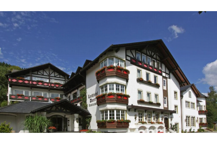 Romantik Landhotel Doerr ligt in het idyllische Bad Laasphe, omringd door groene heuvels en bossen. Hier geniet je van rust, natuur en frisse berglucht, ideaal voor wandelingen en fietstochten. Het hotel biedt comfortabele kamers met een warme, klassieke inrichting en een sfeervol restaurant waar je kunt proeven van regionale specialiteiten. Voor ultieme ontspanning is er een wellnessruimte met zwembad, sauna en beautybehandelingen. Na een dag in de natuur kun je heerlijk bijkomen op het zonneterras of in de gezellige lounge.