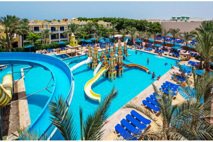 LiggingMirage Bay Resort & Aquapark ligt aan de Safaga Road in Hurghada, Egypte, met een zacht zandstrand dat direct grenst aan het resort. Het ligt op ongeveer 15 kilometer van Hurghada International Airport, wat betekent dat je transfer relatief snel is. Het resort bevindt zich in de Villages Road-wijk, dichtbij winkels en het Senzo Shopping Mall (~2-3 km). De omgeving combineert rust met goede bereikbaarheid van stedelijke voorzieningen.HotelfaciliteitenHet resort telt zo'n 660 tot 700 kamers (een mix voor gezinnen en koppels) en beschikt over meerdere zwembaden buiten én voorzieningen aan het strand. Er is een eigen Aquapark met glijbanen en kinderbaden, zodat waterpret voor kinderen en volwassen aanwezig is. Voor wie wil ontspannen biedt het resort een goed uitgeruste spa met sauna, stoom-/Turks bad, hammam, massages en schoonheidsbehandelingen. Overdag én 's avonds is er animatie en entertainment, verder zijn er bars, een strandbar, tuin- en zonneterrassen, een 24-uurs receptie en dienstverlening zoals wasserij en vervoeropties.KamersDe kamers zijn ruim opgezet, comfortabel ingericht en geschikt voor zowel gezinnen als koppels, met airconditioning, satelliet-tv, kluisje, telefoon en een balkon of terras. Veel kamers bieden uitzicht op de tuin, de zwembaden of het strand. De badkamers zijn voorzien van douche of douche/bad, haardroger en toiletartikelen. Voor meer zelfstandigheid zijn er appartementen of kamers met extra voorzieningen zoals keukenfaciliteiten. Alles is gericht op gemak en comfort.Sport/entertainmentSportievelingen kunnen zich uitleven met activiteiten zoals snorkelen, duiken, paardrijden en diverse watersporten, mede dankzij het privéstrand en de toegang tot het rif via een steiger. Op de landzijde kun je beachvolleybal spelen, gebruikmaken van fitnessruimte, deelnemen aan aerobics of andere fitness-animatie. Voor kinderen is er volop vermaak: Aqua Park, kinderclub, speeltuin en animatieprogrammering overdag en 's avonds. Live shows, muziek en thema avonden zorgen 's avonds voor sfeer.Eten en drinkenHet resort hanteert een all-inclusive formule met buffetten voor ontbijt, lunch en diner en meerdere à -la-carte / specialiteitenrestaurants zoals vis-, Aziatische en lokale keukens. Er zijn verschillende bars waar je overdag en 's avonds drankjes en snacks kunt krijgen, waaronder een strandbar. Voor kinderen zijn er speciale kindermaaltijden en voor mensen met wensen zoals vegetarisch of dieetmaaltijden is vaak mogelijkheid tot aangepast eten. De kwaliteit van het eten wordt regelmatig geroemd in recente reviews als gevarieerd en hygiënisch.