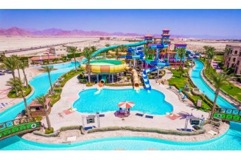LiggingCharmillion Gardens Aqua Park is een viersterrenhotel in Sharm El Sheikh, gelegen in de wijk Nabq Bay. Het biedt directe toegang tot een privéstrand en ligt op ongeveer 12 kilometer van de internationale luchthaven van Sharm El Sheikh. HotelfaciliteitenHet resort beschikt over een uitgebreid waterpark met 11 glijbanen. Voor ontspanning en welzijn kunnen gasten terecht in het wellnesscentrum, dat onder andere massages, een sauna, stoombad en hammam biedt. Er is ook een fitnesscentrum beschikbaar voor sportieve activiteiten. Het resort biedt ook een kinderclub, speeltuin en een animatieprogramma voor zowel kinderen als volwassenen. Avondentertainment, zoals live shows en muziek, zorgt voor plezier na zonsondergang. KamersIn de kamers bevinden zich een woonkamer en een badkamer, De kamers zijn modern ingericht en voorzien van airconditioning, satelliettelevisie, minibar en een balkon of terras.Sport/entertainmentHet resort biedt ook een kinderclub, speeltuin en een animatieprogramma voor zowel kinderen als volwassenen. Avondentertainment, zoals live shows en muziek, zorgt voor plezier na zonsondergang. Eten en drinkenGasten kunnen genieten van diverse eet- en drinkgelegenheden, waaronder een hoofdrestaurant met een internationaal buffet, Ã -la-carterestaurants en verschillende bars. Het resort biedt een all-inclusive formule, waarbij maaltijden, snacks en geselecteerde drankjes zijn inbegrepen.