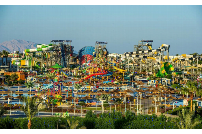 LiggingPickalbatros Aqua Blu Resort in Sharm El Sheikh is een levendig vijfsterrenhotel dat zich vooral richt op gezinnen en waterliefhebbers. Het resort maakt deel uit van het grotere Aqua Park City-complex en combineert ontspanning met veel waterpret. Het ligt in de wijk Om El Seid Hill, op ongeveer tien kilometer van het centrum van Sharm El Sheikh. Gasten hebben via een shuttlebus toegang tot een privéstrand, waardoor het makkelijk is om te genieten van zee en zon.HotelfaciliteitenHet hotel beschikt over meerdere zwembaden, waaronder kinderbaden en zwembaden met golfslag, en een uitgebreid waterpark met tientallen glijbanen van verschillende niveaus. Voor ontspanning kunnen gasten terecht in het wellnesscentrum met sauna, jacuzzi en massages, terwijl het fitnesscentrum en diverse sportfaciliteiten zorgen voor actieve bezigheden. Voor kinderen is er een miniclub met dagelijkse animatieprogramma's, en het hotel biedt ook entertainment voor volwassenen met shows en live-optredens. KamersDe kamers zijn modern en comfortabel ingericht en voorzien van airconditioning, een flatscreen-tv, minibar, kluisje en een balkon of terras. Er zijn familiekamers en suites beschikbaar die geschikt zijn voor gezinnen.Eten en drinkenHet all-inclusive concept van het resort omvat ontbijt, lunch en diner in het hoofdrestaurant, evenals snacks en lichte maaltijden gedurende de dag. Daarnaast zijn er à -la-carterestaurants met verschillende keukens en meerdere bars waar zowel lokale als geïmporteerde dranken worden geserveerd.