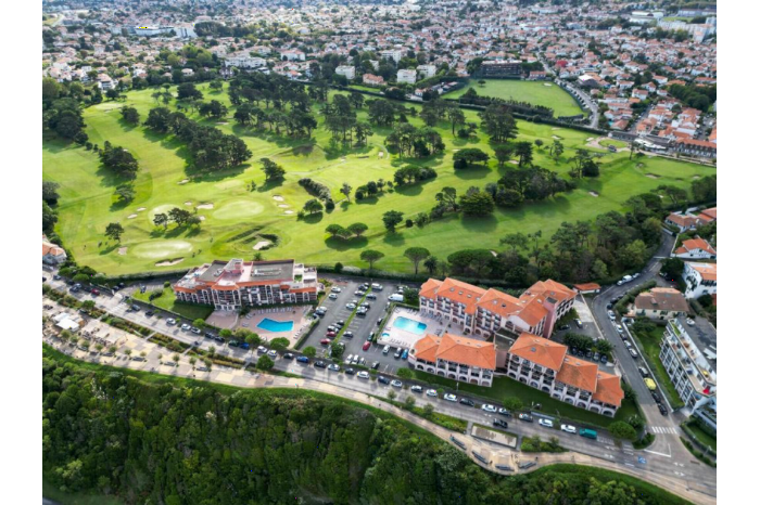 Ben je op zoek naar een ontspannen vakantie aan de Franse kust? Ontdek het 3-sterrenhotel Mer et Golf in het charmante Biarritz. Gelegen tussen de Atlantische Oceaan en de prestigieuze Golf de Biarritz-Le Phare, biedt dit hotel comfortabele studio's en appartementen met eigen kookgelegenheid. Geniet van het uitzicht op de zee of de golfbaan vanaf je eigen terras. Ontspan in het buitenzwembad of verwen jezelf in de spa met sauna en hot tubs. Begin je dag met een continentaal ontbijt en verken daarna de prachtige omgeving. Boek vandaag nog je verblijf en ervaar het zelf!
