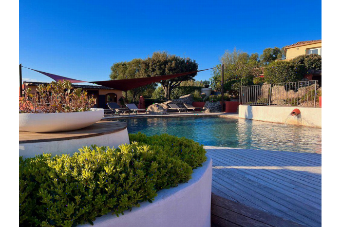 Op zoek naar een charmant verblijf op het prachtige Corsica? In Porto-Vecchio vind je het 4-sterrenhotel Le Roc e Fiori, een retro-chic hotel dat de charme en gezelligheid van een mediterraan dorpje uitstraalt. Gelegen op slechts 5 minuten van het stadscentrum en de schitterende stranden van Santa Giulia en Palombaggia, biedt dit hotel de ideale uitvalsbasis voor jouw vakantie. Het hotel is een onafhankelijk filiaal van de "Teritoria"-keten en partner van "Cosy Places Luxe", wat garant staat voor een unieke ervaring. Met een hoofdgebouw dat onder andere de receptie, lounges, bibliotheek, bar en ontbijtruimte herbergt, en diverse chalets verspreid over een prachtig onderhouden tuin, geniet je hier van zowel comfort als privacy. Ontspan bij het zwembad met panoramisch uitzicht op de omliggende bergen en de baai van Porto-Vecchio. Ervaar de unieke sfeer van Le Roc e Fiori Hotel en maak je verblijf op Corsica onvergetelijk. Boek snel je verblijf en ontdek het zelf!
