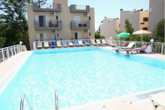 LiggingDit hotel bevindt zich in Chersonissos, op slechts 200 m van een zandstrand verwijderd, op een rustige plek. HotelfaciliteitenIn dit hotel met een lift en een receptie zijn 29 kamers. Een bagagedepot en een kluis bieden de nodige service. Via Wi-Fi hebben de gasten toegang tot het internet. De tourdesk biedt ondersteuning bij het boeken van excursies. Een supermarkt en een souvenirwinkel en andere winkels zijn voorhanden om heerlijk te winkelen of te flaneren. Buiten biedt een tuin extra ruimte voor ontspanning en recreatie. Tot de overige voorzieningen van het verblijf behoort een tv-ruimte. Desgewenst beschikken de reizigers over parkeerplaatsen. Tot de aangeboden diensten horen een 24-uurs beveiligingsdienst, een oppasservice, een autoverhuur, een medische dienst, een transferservice, roomservice, een wekdienst, een wasservice, een kapper, een muntwasserette en een eigen shuttlebus. KamersAirconditioning en een verwarming zorgen voor een prettig luchtklimaat in de kamers. De meeste kamers hebben een balkon. De gasten kunnen heerlijk slapen op een tweepersoonsbed. Er zijn aparte slaapkamers aanwezig. Voor de jongste gasten staan kinderbedjes klaar. Bovendien zijn een kluis, een minibar en een bureau beschikbaar. In de kitchenette bevinden zich een koelkast, een mini-koelkast en een thee-/koffiezetapparaat. Een telefoon, een tv met satellietontvangst en pay-per-view optie, een radio en Wi-Fi ronden het serviceaanbod af. Tot de extra´s van de kamers behoren pantoffels. De badkamers beschikken over een douche, een bad en een bidet. Een föhn en badjassen zijn voor het gemak van de gasten beschikbaar. Voor extra comfort in de badkamers zorgen cosmetische producten. Het hotel beschikt over gezinskamers en niet-rokerskamers.Sport/entertainmentHet zwembadengedeelte in de openlucht staat garant voor heerlijke verfrissing. Een bubbelbad ontspant de spieren en een zwembadbar/snackbar zorgt voor versterking tussendoor. Echt optimaal van de vakantie genieten kan op het zonneterras met ligstoelen en parasols. Wie lekker wil bewegen, kan van tennis en golfen genieten. Een fitnessstudio, biljart en darts maken deel uit van het sport- en recreatieaanbod van het hotel. In het verblijf worden diverse wellnessaanbiedingen zoals bijvoorbeeld spa, sauna, een stoombad en hamam aangeboden. Tot de andere vrijetijdsmogelijkheden horen een miniclub, een disco en een nachtclub.  Eten en drinkenEr is een grote keuze uit gastronomische voorzieningen zoals bv. een restaurant, een koffiehuis en een bar. Bij de accommodatie kunnen de gasten halfpension boeken. Voor de grote honger en de kleine trek is er keuze uit ontbijt, middagmaaltijd en diner. Ook bijzondere maaltijden zoals bijvoorbeeld dieetgerechten zijn verkrijgbaar. Daarnaast stelt het hotel speciale menu's beschikbaar. CreditcardsDe volgende creditcards worden geaccepteerd: American Express, Visa en MasterCard.