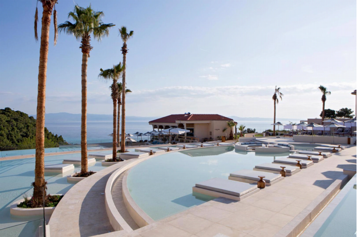 Een vakantie om helemaal bij weg te dromen: dat beleef je bij Cora Hotel en Spa Resort! Dit prachtige 5-sterrenhotel ligt in Afitos op het schiereiland Chalkidiki. Een adembenemende omgeving, waarin dit adembenemende hotel extra goed tot zijn recht komt. Geniet van een heerlijke relaxvakantie bij het zwembad (mét zeezicht), trakteer jezelf op een wellnessmomentje bij de sauna of verwen je smaakpapillen met een hoogstaande gastronomische beleving. Alles is hier lekker luxe, en toch is de sfeer heel gemoedelijk. Klinkt dat als jouw droomvakantie? Reserveer dan snel jouw kamer bij Cora Hotel en Spa Resort!