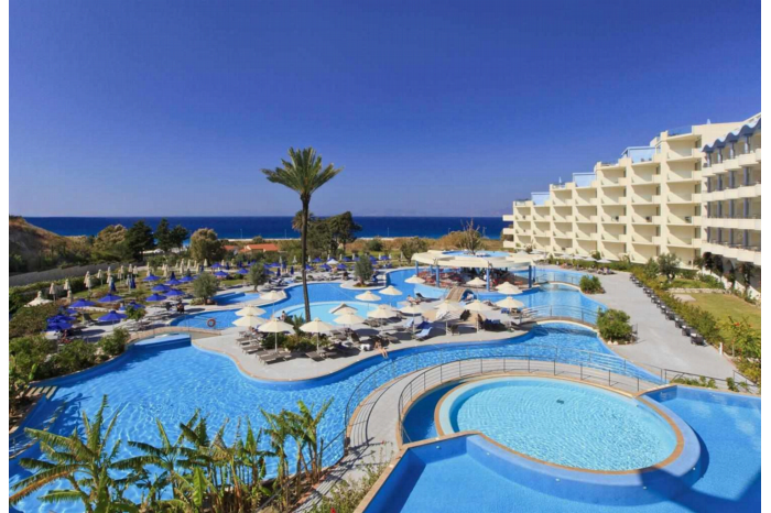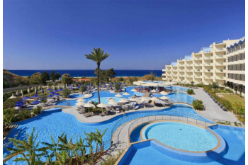 LiggingHet resort is gelegen aan de westkust van Rhodos, op 200 meter van het kiezelstrand met kristalhelder, blauw water. Het centrum van Ixia ligt vlakbij en biedt vele restaurants en bars. De stad Rhodos ligt op slechts 4 km afstand en er rijdt regelmatig een lijnbus. De internationale luchthaven Rhodos ligt op ongeveer 12 km afstand van het hotel. HotelfaciliteitenIn dit hotel met een lift en een receptie zijn 298 kamers. De gasten van het hotel ontvangen bij aankomst een welkomstdrankje. Wi-Fi is aanwezig. Rolstoelvriendelijke faciliteiten zijn beschikbaar. Er zijn winkels die tot rondneuzen en flaneren uitnodigen. Buiten biedt een tuin extra ruimte voor ontspanning en recreatie. Tot de beschikbare faciliteiten behoren een oppasservice op aanvraag, een kinderopvang, een 24-uurs roomservice, een wasservice, een kapper en een hotelarts. KamersIn de kamers bevinden zich een woonkamer en een badkamer, voor een aangenaam luchtklimaat zorgt een verwarming. Op de gasten wacht een welkomstcadeau. Vanaf het balkon of het terras, die tot de basisuitrusting van de meeste kamers behoren, hebben de gasten een uitzicht op zee. Voor kinderen kunnen op aanvraag kinderbedjes ter beschikking worden gesteld. Bovendien is er een minibar aanwezig. Ook een thee-/koffiezetapparaat behoort tot de standaardvoorzieningen. Bovendien zijn een tv met satelliet-/kabelontvangst en Wi-Fi (kosteloos) beschikbaar. Als extra service genieten de gasten in de badkamers van cosmetische producten.Sport/entertainmentActieve ontspanning wacht de gasten in het zwembadgedeelte met 3 buitenzwembaden. Het overdekte zwembad biedt weersonafhankelijk zwemplezier. Daarnaast is er een gedeelte met pierenbadjes voor kinderen aanwezig. Aan de bar bij het zwembad worden verfrissende drankjes aangeboden. Voor degene die ook op reis wil blijven sporten, biedt het verblijf de mogelijkheid tot tennis. Het hotel biedt tal van sportmogelijkheden in het indoorgedeelte aan zoals bijvoorbeeld een fitnessstudio, tafeltennis, darts en squash en tegen betaling ook biljart. Het hotel beschikt over een wellnessgedeelte met een spa, een hamam, een schoonheidssalon, thalassobehandelingen, een zonnebank en ook (tegen betaling) een sauna. Een animatieprogramma, een miniclub en een minidisco garanderen volop recreatieplezier.  Eten en drinkenHet verblijf beschikt over een bar. De gasten genieten van de maaltijden in een gemoedelijke sfeer in een van de 5 restaurants (buffet en à la carte). Het hotel biedt halfpension, volpension en all-inclusive als boekingsmogelijkheid op het gebied van eten en drinken aan. Tot de voordelen van een all-inclusive verblijf behoort een divers aanbod, bijvoorbeeld een brede keuze uit alcoholische en alcoholvrije dranken en een gratis vulling van de minibar. De gasten maken bij het ontbijt, het middag- en avondeten gebruik van het buffet of kiezen naar wens gerechten van de menukaart (als middageten en diner). CreditcardsDe volgende creditcards worden geaccepteerd: American Express, Visa, Diners Club en MasterCard.