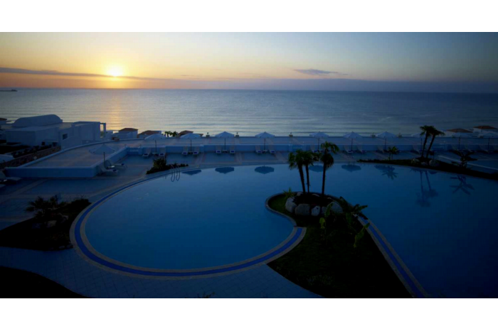 LiggingHet hotel ligt aan de zuidoostkust van het eiland Rhodos, direct aan het zand-/kiezelstrand in de ongerepte omgeving van Lachaniá. Het hotel ligt slechts 5 km van het traditionele dorp Lachaniá, met de typische witte huizen, en het is ongeveer 12 km naar Gennádi. De meest zuidelijke punt van het eiland, Prassonissi, waar de Middellandse Zee en de Egeïsche Zee elkaar ontmoeten, ligt op 18 km afstand. Het beroemde dorp Lindos, met de oude Akropolis, ligt op 30 km afstand. De internationale luchthaven Rhodos, Diagoras, ligt op ongeveer 75 km van het hotel. HotelfaciliteitenDe gasten staan 251 kamers en een receptie in de ontvangstruimte ter beschikking. De gasten van het resort ontvangen bij aankomst een welkomstdrankje. In het complex is Wi-Fi voorhanden. Op het terrein van het verblijf bevinden zich een mooie tuin en een fraaie speelplaats. Tot de aangeboden faciliteiten behoren een oppasservice op aanvraag, een 24-uurs roomservice, een wasservice, een kapper en een hotelarts. KamersOp de gasten wacht een welkomstcadeau. In de meeste verblijven genieten de gasten vanaf het balkon of het terras van zijwaarts zeezicht. De kamers beschikken over een tweepersoonsbed. Voor kinderen kunnen op aanvraag kinderbedjes ter beschikking worden gesteld. Bovendien is er een minibar aanwezig. Ook zijn een thee-/koffiezetapparaat en een afwasmachine aanwezig. Een tv met satelliet-/kabelontvangst is ook bij de basisvoorzieningen van de kamers inbegrepen. In de badkamers vinden de gasten een telefoon. Voor ouders met kinderen zijn gezinskamers beschikbaar.Sport/entertainmentHet zwembadgedeelte met 3 buitenbaden en 2 overdekte zwembaden nodigt uit tot ontspannen zwemplezier. Een apart zwemcomplex voor kinderen is voorhanden. Echt optimaal van de vakantie genieten kan op het zonneterras met ligstoelen en parasols. Bij de zwembadbar kunnen de gasten kiezen uit diverse verfrissende drankjes. Het resort biedt een omvangrijk buitensportprogramma met tennis, volleybal, basketbal en midgetgolf aan. Het verblijf heeft in het indoorgedeelte ook veel activiteiten voor sportliefhebbers in petto zoals een fitnessstudio, tafeltennis, biljart en darts. Het complex beschikt over een wellnessgedeelte met een spa en thalassobehandelingen en ook - tegen een extra toeslag - een sauna en een stoombad. Kleine en grote gasten hebben de mogelijkheid om met entertainmentprogramma´s hun verblijf gevarieerder te maken.  Eten en drinkenHet horecagedeelte is uitgerust met een bar. De gasten genieten van de maaltijden in een gemoedelijke sfeer in een van de 6 restaurants (buffet en à  la carte). Verfrissende drankjes aan de strandbar staan garant voor feelgood momenten. Het resort biedt halfpension, volpension en een all-inclusive special deal als boekingsmogelijkheid op het gebied van eten en drinken aan. De all-inclusive vakantiegangers genieten van bijzondere extraatjes zoals snacks en daarnaast een keuze uit alcoholische en alcoholvrije dranken. Een uitgebreid ontbijtbuffet garandeert een goede start in de dag. 's Middags en 's avonds is er een keuze uit buffet, à -la-carte restaurant en menu. CreditcardsIn het verblijf worden de volgende creditcards geaccepteerd: American Express, Visa en MasterCard.