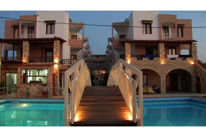 LiggingDit aparthotel, perfect voor strandvakantiegangers en gezinnen, ligt in Sfakaki, direct aan de zee. De dichtstbijzijnde bushalte ligt op 5 minuten lopen, (300 m) afstand. Tot aan de luchthaven Heraklion (HER) is het circa 72 km. HotelfaciliteitenDe gasten beleven een ontspannen verblijf in de 48 niet-rokerskamers. Aan de receptie in de ontvangstruimte staat het vriendelijke personeel de gasten met raad en daad bij. Een bagagedepot en een kluis bieden de nodige service. In de openbare ruimtes (kosteloos) is Wi-Fi verkrijgbaar. De tourdesk biedt ondersteuning bij het boeken van excursies. Naast een supermarkt zijn andere winkels voorhanden. Op het terrein van het verblijf bevinden zich een mooie tuin en een fraaie speelplaats. Tot de overige voorzieningen van het hotel behoren een tv-ruimte en een speelkamer. Afhankelijk van de beschikbaarheid kunnen reizigers die met een eigen voertuig komen, parkeren op de parkeerplaats (kosteloos). Tot de aangeboden diensten horen een 24-uurs beveiligingsdienst, een autoverhuur, een medische dienst, roomservice, een wasservice, een kapper en een eigen shuttlebus. Om de omgeving te verkennen, biedt de fietsverhuur de noodzakelijke uitrusting. Ter ondersteuning van het zakendoen is een fax voorhanden. KamersIn de kamers zijn een living en een badkamer voorhanden, voor de juiste luchtcirculatie zorgt airconditioning (tegen toeslag). Tot de basisuitrusting van de meeste kamers behoort een balkon. De kamers beschikken over een tweepersoonsbed en een slaapbank. Er zijn aparte slaapkamers. In een kluis kunnen waardevolle bezittingen kunnen tegen betaling worden opgeborgen. In de kitchenette bevinden zich een koelkast en een mini-koelkast. Voor vakantiecomfort zorgen satelliettelevisie, een radio en Wi-Fi (kosteloos). In de badkamer vinden de gasten een douche. Voor ouders met kinderen zijn gezinskamers beschikbaar.Sport/entertainmentVoor een afwisselend verblijf zorgen de sport- en recreatiemogelijkheden voor de gasten. Het zwemcomplex met buitenbaden en zone voor kinderen is geschikt voor actieve ontspanning en aquarobicstrainingen. Ook een terras met ligstoelen en parasols is voorhanden. In de (snack-) bar worden verfrissende drankjes aangeboden. Biljart in het overdekte gedeelte houdt de gasten van het aparthotel fit.  Eten en drinkenEen niet-rokers restaurant, een ontbijtzaal, een koffiehuis en een bar behoren tot de culinaire faciliteiten. Het verblijf biedt een overnachting incl. ontbijt en halfpension als boekingsmogelijkheid op het gebied van eten en drinken aan. Een continentaal ontbijtbuffet en diner zorgen dagelijks voor een culinair highlight. Ook bijzondere maaltijden zoals bijvoorbeeld dieetgerechten zijn verkrijgbaar. Daarnaast stelt het hotel speciale menu's beschikbaar. CreditcardsDe volgende creditcards worden in het aparthotel geaccepteerd: American Express, Visa en MasterCard.