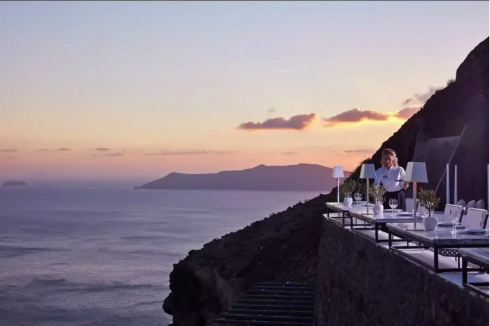 Het San Antonio Hotel op Santorini is een exclusief adults-only hotel, gelegen in het schilderachtige Imerovigli. Het biedt een luxe en rustige ervaring met adembenemend uitzicht op de iconische Caldera en de Egeïsche Zee. De stijlvolle suites zijn ruim en voorzien van moderne gemakken. Het hotel staat bekend om zijn uitstekende service en verfijnde gastronomie, waarbij lokale Griekse gerechten worden geserveerd in een romantische setting. Perfect voor stellen die op zoek zijn naar een romantische en ontspannende vakantie op het prachtige eiland Santorini.