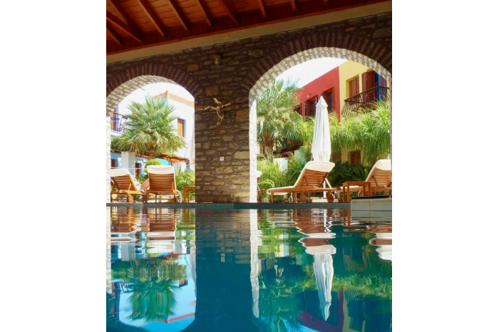 Omgeven door een weelderige tuin van 500 m² ligt Iapetos Village als een groene oase in Yialos, het schilderachtige hoofdstadje van Symi. 25 Neoklassieke huizen vormen het hotel en zorgen voor een speciale ambiance. Alle comfort is aanwezig terwijl je het gevoel hebt de klassieke wereld van Griekenland binnen te treden. Je wandelt zo het centrum in en kijkt je ogen uit. Wat een mooie architectuur en kleuren, de haven lijkt wel een schilderijtje. Overal smaakvolle terrasjes en restaurants, de authentieke gerechten zullen je verrassen. Je moet zeker ook eens de kleine Symi-garnaaltjes proberen, heerlijk met een glaasje Ouzo!