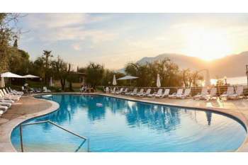 Geniet van het prachtige buitenzwembad en verblijf 8 of 15 dagen direct aan het Gardameer incl. gebruik van ligbedden