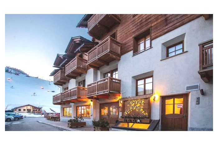 Het gezellige 3-sterren Hotel Helvetia ligt in de voetgangerszone van Livigno en direct naast de stoeltjeslift (ca. 50 m). De skibushalte ligt op ongeveer 500 m.
