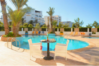 LiggingAtlantic Palm Beach ligt in de Founty-wijk van Agadir Bay, op loopafstand van het strand (ongeveer tien minuten wandelen) en op zo'n vijftien minuten van het centrum. De golfterreinen zoals Golf of the Ocean, Golf of the Sun en andere liggen op circa 7 kilometer afstand.HotelfaciliteitenHet aparthôtel heeft een buitenzwembad voor volwassenen en een kinderzwembad, een zonneterras en tuingedeeltes. Er is een à -la-carte restaurant, minimarket, gratis WiFi in alle accommodaties en openbare ruimtes, een conferentieruimte, dagelijkse schoonmaakservice, autoverhuur en wasserij. Je kunt overal gebruikmaken van airconditioning, liften zijn aanwezig; er is gratis parkeerplaats op eigen terrein.KamersDe accommodatie telt 105 zelfstandige suites en appartementen, variërend van Junior Suites tot Superior Suites en Senior Suites. Elke unit beschikt over airconditioning, een woonkamer met sofa's (sommigen om te bouwen tot extra bedden), een kitchenette, televisie, telefoon, eigen badkamer en een terras met uitzicht op zee, zwembad of boulevard. Ze zijn geschikt voor gezinnen of groepen van 1 tot ongeveer 6 personen.Sport/entertainmentEr zijn ontspanningsopties zoals de zwembaden, de zonneterrassen en buitenruimtes om te relaxen. Voor wie wil, worden activiteiten in de omgeving aangeboden zoals golf, paardrijden, casinobezoeken en watersportmogelijkheden. De ligging maakt het makkelijk om zowel strandactiviteiten als stedelijk vermaak in Agadir te combineren.Eten en drinkenVoor het ontbijt is er buffet of geserveerd ontbijt beschikbaar. Het à -la-carte restaurant biedt lokale en internationale gerechten. Daarnaast is roomservice mogelijk. Mensen kunnen eten en drinken op het terras, in het restaurant of in de gemeenschappelijke lounge.