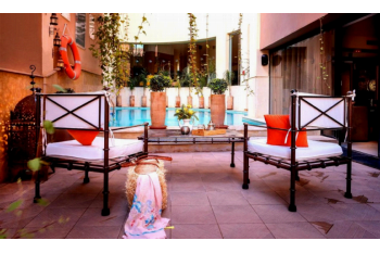 LiggingDellarosa Boutique Hotel & Spa ligt in de wijk Hivernage, in het hart van Marrakech. Je wandelt in ongeveer tien minuten naar Place Jemaa el-Fna, de souks en de medina. De omgeving combineert rust met de nabijheid van winkels, restaurants en culturele hoogtepunten. De luchthaven Menara is op korte rijafstand, waardoor aankomst en vertrek relatief makkelijk zijn. HotelfaciliteitenHet hotel straalt moderne elegantie uit, mede dankzij de combinatie van hedendaagse en Marokkaanse invloeden in het interieur. Er is een buitenzwembad met poolhouse waar je kunt ontspannen, en een spa met hammam, jacuzzi, verschillende lichaams- en gezichtsbehandelingen en een fitnessruimte. Verder biedt het hotel faciliteiten zoals gratis wifi, 24-uursreceptie, roomservice, terrassen om buiten te zitten, en een sky-lounge met uitzicht op de Atlas-gebergte. KamersDe kamers variëren van privilège kamers tot ruime suites zoals de Signature Suite. Ze zijn stijlvol ingericht in hedendaagse stijl met Marokkaanse accenten. Alle kamers beschikken over airconditioning, privébadkamer, comfortabele bedden, veelal een balkon of terras, en voorzieningen zoals minibar en televisie. De inrichting is gericht op comfort en sfeer, met aandacht voor detail.Sport/entertainmentVoor ontspanning is er het zwembad waar je kunt zonnen en afkoelen, plus de spa-faciliteiten waar je terecht kunt voor wellness, hamam, massages en jacuzzi. Wie actief wil zijn kan gebruikmaken van de fitnessruimte. Daarnaast biedt de ligging een goede basis voor wandelingen door de medina en uitstapjes, en het hotel helpt met het organiseren daarvan. De sky-lounge is ook een plek om 's avonds te genieten van het uitzicht en een ontspannen sfeer.  Eten en drinkenDellarosa heeft meerdere eetgelegenheden, waaronder het à -la-carte restaurant met internationale en lokale gerechten, en een lounge bar waar gasten terechtkunnen voor drankjes of lichte gerechten. Het ontbijt is inbegrepen, met vaak een buffet of ruime keuze aan lokale en internationale opties. De gerechten worden bereid met zorg, en er is oog voor presentatie en kwaliteit.