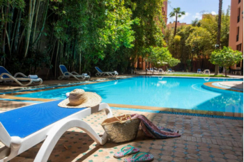 LiggingHotel Meriem ligt in de Gueliz-wijk van Marrakech, aan de Rue Mohamed El Béqual. Vanaf het hotel is het slechts een paar minuten rijden naar het treinstation van Marrakech en het internationale vliegveld bevindt zich op ongeveer 5-6 km. De bekende plaatsen Jemaa el-Fna en de souks liggen op zo'n 15-25 minuten lopen of korte taxirit vandaan, afhankelijk van waar je heen gaat. Het hotel staat relatief centraal, dicht bij winkels, restaurants en stedelijke voorzieningen. HotelfaciliteitenHotel Meriem biedt twee buitenzwembaden met terrassen voorzien van ligstoelen. Er is een spa en wellness-centrum met sauna, hamam en massage-mogelijkheden. Gasten hebben toegang tot een fitnessruimte en er is gratis wifi in heel het hotel. Verder is er een restaurant met buffet en terras, een bar/lounge, roomservice, en gratis parkeergelegenheid op het terrein.  KamersDe kamers zijn modern ingericht en voorzien van airconditioning. Ze hebben flatscreen-televisie met satellietkanalen, privébadkamer met douche of bad en gratis toiletartikelen. Veel kamers hebben een minibar en een balkon of terras. Sommige kamers bieden uitzicht op het zwembad of de tuin.Sport/entertainmentVoor sport en ontspanning kunnen gasten terecht in de fitnessruimte, zwemmen in een van de buitenzwembaden, of gebruikmaken van de spa met sauna en hamam. Voor wie wil relaxen is er een zonneterras. Daarnaast organiseert het hotel diensten om excursies of vervoer naar bezienswaardigheden te regelen, zodat je makkelijk de omgeving kunt ontdekken.  Eten en drinkenElke ochtend wordt een ontbijt geserveerd, meestal in buffetvorm. Het hotel beschikt over meerdere eetgelegenheden, waaronder restaurants waar internationale en Marokkaanse gerechten beschikbaar zijn. Overdag en 's avonds kun je ook terecht in de bar of lounge voor drankjes of lichte snacks.