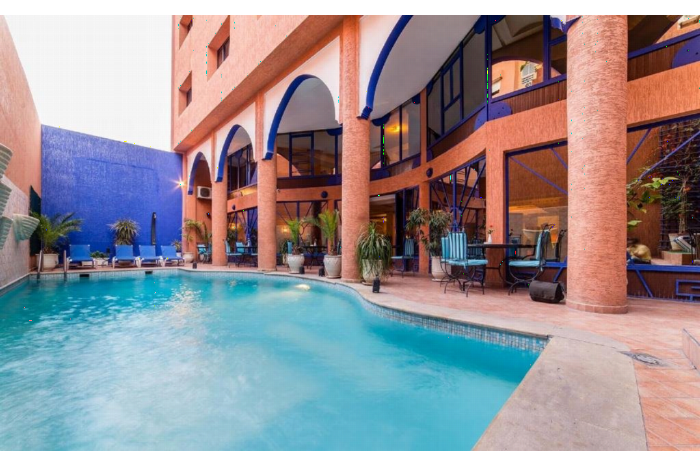 LiggingHotel Les Trois Palmiers is centraal gelegen in Marrakech, op ongeveer 17 minuten lopen van de beroemde Jardin Majorelle. Het hotel bevindt zich in de buurt van het Palais des Congrès en biedt gemakkelijke toegang tot lokale markten, musea en andere culturele bezienswaardigheden, waardoor het een ideale uitvalsbasis is voor het verkennen van de stad.HotelfaciliteitenHet hotel beschikt over een buitenzwembad, een restaurant met Marokkaanse keuken, een snackbar en een bar. Gasten kunnen genieten van gratis WiFi en een dagelijks ontbijtbuffet. Daarnaast biedt het hotel spa-diensten, waaronder massages, hydrotherapie en schoonheidsbehandelingen.KamersDe kamers van Hotel Les Trois Palmiers zijn uitgerust met airconditioning, een flatscreen-tv, een minibar en een kluisje. Sommige kamers bieden uitzicht op de stad. Gasten hebben toegang tot gratis WiFi en kunnen genieten van roomservice.Sport/entertainmentGasten kunnen ontspannen bij het buitenzwembad of deelnemen aan wellnessbehandelingen in de spa. Er worden ook massages en schoonheidsbehandelingen aangeboden. Voor degenen die actief willen blijven, is er een fitnessruimte beschikbaar.Eten en drinkenHet hotel serveert dagelijks een continentaal ontbijt. Voor lunch en diner kunnen gasten terecht in het restaurant, waar traditionele Marokkaanse gerechten worden bereid met verse lokale ingrediënten. De bar bij het zwembad biedt verfrissende drankjes en lichte snacks.