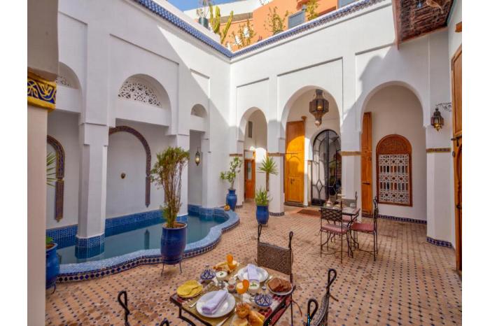 LiggingPalais Tinmel ligt in de oude medina van Marrakech, in een zijstraat van de buurt Zaouia Abbassia, redelijk dicht bij culturele bezienswaardigheden. Dingen als de Majorelle Tuinen en Yerba Saint Laurent Museum liggen op zo'n 1-1,5 km afstand, en de luchthaven Menara is zo'n 6 tot 10 kilometer verwijderd. De souks en het plein Jemaa el-Fna zijn binnen loop- of korte taxi/rit bereikbaar. HotelfaciliteitenEr is keuze uit een junior suite, een suite en 4 tweepersoonskamers. De receptie is 24 uur per dag geopend. De gasten van het hotel ontvangen bij aankomst een welkomstdrankje. Een bagagedepot, een kluis en een wisselkantoor behoren tot de faciliteiten van het verblijf. In het hotel is Wi-Fi verkrijgbaar. De tourdesk biedt ondersteuning bij het boeken van excursies. Voor gemoedelijke stemmingen zorgt een open haard. In de supermarkt zijn producten voor het dagelijks gebruik verkrijgbaar. Buiten biedt een tuin extra ruimte voor ontspanning en recreatie. Tot de overige voorzieningen van het hotel behoren een tv-ruimte en een bibliotheek. Wie met de auto komt, kan hem (tegen toeslag) op het parkeerterrein van het verblijf parkeren. Onder de beschikbare voorzieningen bevinden zich een 24-uurs beveiligingsdienst, een oppasservice, een kinderopvang, een autoverhuur, een medische dienst, een transferservice, een 24-uurs roomservice, een wekdienst, een wasservice en een eigen shuttlebus. Sportieve gasten die het omliggende landschap op de fiets willen verkennen, zullen de fietsverhuur op prijs stellen. Ter ondersteuning van het zakendoen is een kopieerapparaat voorhanden. KamersAirconditioning en een individueel regelbare verwarming zorgen voor een aangename luchtcirculatie in de kamers. In de meeste kamers is een balkon of een terras aanwezig. De kamers beschikken over een kingsize bed en een slaapbank. Hun waardevolle spullen kunnen de gasten in een kluis deponeren. Ook een koelkast behoort tot de standaardvoorzieningen. Een strijkset is voor het extra comfort van de gasten verkrijgbaar. Bovendien zijn een telefoon, satelliettelevisie en Wi-Fi (kosteloos) beschikbaar. Tot de extra´s van de kamers behoren pantoffels. In de badkamer, van een douche en een bad voorzien, vinden de gasten een föhn en badjassen. De gasten genieten in de badkamers cosmetische producten en een handdoekenset. Het hotel beschikt over gezinskamers en niet-rokerskamers.Sport/entertainmentHet zwembadcomplex met overdekte gedeeltes en zones in de openlucht nodigt uit tot ontspannen zwemplezier. Van de ligstoelen op het terras kan ook gebruik worden gemaakt. Bij de zwembadbar kunnen de gasten kiezen uit diverse verfrissende drankjes. Het hotel biedt een omvangrijk buitensportprogramma met fietsen/mountainbiken, tennis, golfen en paardrijden aan. In het verblijf worden diverse wellnessaanbiedingen zoals bijvoorbeeld spa, hamam, een schoonheidssalon, massagebehandelingen en een zonnebank aangeboden. Een animatieprogramma, een disco en een nachtclub garanderen volop recreatieplezier. Eten en drinkenEr is een grote keuze uit gastronomische voorzieningen zoals bv. een restaurant, een eetzaal, een ontbijtzaal en een koffiehuis. Het hotel biedt een overnachting incl. ontbijt, halfpension en volpension als boekingsmogelijkheid op het gebied van eten en drinken aan. Een continentaal ontbijt, middag- en avondeten verleiden met een gevarieerd aanbod van gerechten (diner à la carte). Kindermenu's, halal maaltijden en koosjere maaltijden worden op aanvraag bereid. Daarnaast stelt het hotel snacks beschikbaar. CreditcardsDe volgende creditcards worden in het verblijf geaccepteerd: Visa en MasterCard.