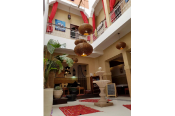 LiggingRiad Al Wafaa bevindt zich in de medina, in de wijk Mechouar-Kasbah/Mellahe, zeer dicht bij bezienswaardigheden zoals het El Badi paleis, de Saadische graven en de Bahia-paleis. De beroemde Jamaâ el-Fna-pleinen en andere highlights zijn in vijf tot tien minuten lopen bereikbaar via kleine steegjes. De luchthaven Menara ligt op enkele kilometers afstand, waardoor de riad gemakkelijk te bereiken is.HotelfaciliteitenDeze riad biedt een 24-uursreceptie, gratis WiFi in alle ruimtes, een bagageopslag en veiligheidskluisje. Er is een restaurant ter plaatse en men kan eten op het terras of in de binnenpatio. Verder zijn er twee terrassen om te ontspannen, een gemeenschappelijke woonkamer/lounge, en tuin-/buitenruimte. Voor gezinnen zijn er kinderfaciliteiten zoals kinderbedjes beschikbaar. Service-elementen zoals roomservice, wasserij en excursie-/ticketassistentie zijn aanwezig. Er is geen eigen parkeerplaats op het terrein.KamersEr zijn zes kamers beschikbaar, variërend in grootte en inrichting, allemaal met airconditioning en eigen badkamer. De kamers zijn comfortabel ingericht en bieden vaak uitzicht op de patio, terras of de binnenplaats. Voorzieningen zoals föhn, gratis toiletartikelen en handdoeken zijn standaard. Sommige kamers hebben extra voorzieningen zoals balkon of terras.Sport/entertainmentHoewel Riad Al Wafaa geen uitgebreide sportfaciliteiten heeft zoals grote zwembaden of fitnessruimtes, zijn er ontspannende opties. Je kunt gebruikmaken van de terrassen en zonneligstoelen, genieten van de rust in de patio's, en de omgeving verkennen te voet. Optioneel kunnen excursies geregeld worden via de riad. Het is vooral een plek om bij te komen na een dag in de stad.Eten en drinken's Ochtends wordt een gratis ontbijt geserveerd. Het restaurant in de riad biedt Marokkaanse gerechten en internationale opties, en je kunt eten op de binnenpatio of op het terras. Er is ook de mogelijkheid tot snacks of lichte maaltijden en men houdt rekening met speciale dieetwensen op verzoek.