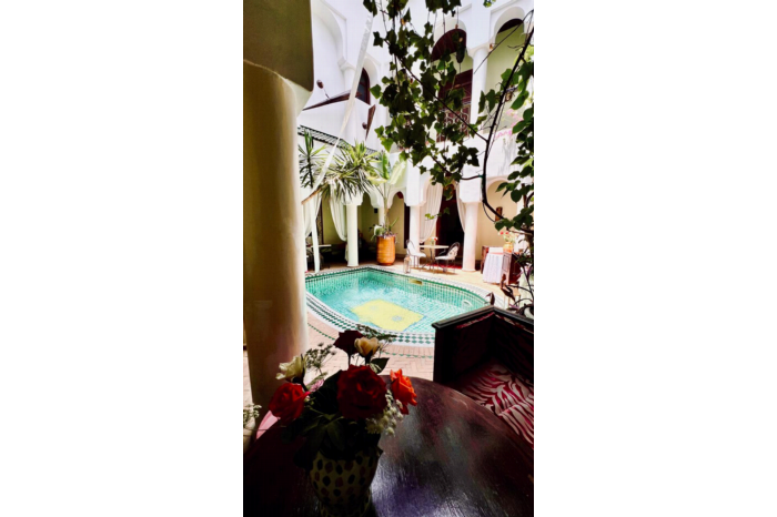 LiggingDit hotel ligt direct in het centrum van Marrakesh.HotelfaciliteitenDe gasten kunnen zich in 8 kamers heerlijk op hun gemak voelen. Het vriendelijke personeel aan de receptie is graag bij alle vragen behulpzaam. Het voorzieningenaanbod van het hotel bevat een bagagedepot en een kluis. Via Wi-Fi hebben de gasten toegang tot het internet. De tourdesk biedt ondersteuning bij het boeken van excursies. Naast een supermarkt zijn andere winkels voorhanden. Tot de overige voorzieningen van het verblijf behoren een tv-ruimte en een bibliotheek. De gasten die met de auto komen, kunnen in een garage of op de parkeerplaats parkeren. Onder de beschikbare voorzieningen bevinden zich een autoverhuur, een transferservice, roomservice, een wasservice, een muntwasserette en een eigen shuttlebus. Bij het zakendoen kan van het businesscenter gebruik worden gemaakt en staat een fax ter beschikking.KamersAirconditioning en een verwarming zorgen voor een prettig luchtklimaat in de kamers. De gasten kunnen vanaf het balkon of het terras van het uitzicht op het zwembad genieten. De kamers beschikken over een queensize bed of een kingsize bed. Bovendien zijn een kluis, een minibar en een bureau beschikbaar. Ook een mini-koelkast behoort tot de standaardvoorzieningen. Door het comfortabele serviceaanbod met een telefoon, satelliettelevisie en Wi-Fi (kosteloos) staan verschillende mogelijkheden op het gebied van communicatie en entertainment ter beschikking. In de badkamer, uitgerust met een douche en een bad, vinden de gasten een föhn. Het hotel beschikt over niet-rokerskamers.Sport/entertainmentVerkwikking biedt het overdekte zwembadgedeelte. Comfortabele ligstoelen staan op het terras klaar voor gebruik. Verschillende opties, zoals bijvoorbeeld paardrijden, biljart, een spa, een sauna, een hamam, massagebehandelingen en een zonnebank, bieden een leuke afwisseling. Copyright GIATA 2004 - 2025. Multilingual, powered by www.giata.com for client no. 126404Eten en drinkenEr is een restaurant voorhanden. Er kan halfpension worden geboekt. Iedere dag worden ontbijt en diner geserveerd.