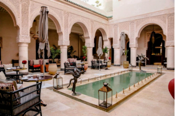 LiggingRiad Fès ligt centraal in de oude medina van Fez, op wandelafstand van de souks en historische bezienswaardigheden. De ligging biedt een unieke combinatie van rust en levendige cultuur, ideaal voor wie de stad wil verkennen vanuit een luxueuze oase..HotelfaciliteitenDeze stijlvolle riad ademt grandeur en traditionele charme, met diverse prachtig ingerichte patio's, een elegant zwembad, een dakterras met panoramisch uitzicht en een exclusieve spa met hamam. Daarnaast beschikt de accommodatie over een gastronomisch restaurant, een loungebar, een fitnessruimte en een bibliotheek. De sfeer is verfijnd en ontspannen, met oog voor detail en service.KamersDe kamers en suites zijn klassiek en elegant ingericht, met Marokkaanse details en modern comfort. Voorzien van airconditioning, luxe badkamers en in veel gevallen uitzicht op de patio of de stad. Sommige suites hebben een privéterras voor extra privacy en rust.Sport/entertainmentNaast het zwembad en de spa is er een kleine fitnessruimte beschikbaar. De riad organiseert op verzoek ook kookworkshops, wandelingen door de medina of andere culturele activiteiten. De focus ligt hier op rust, luxe en beleving in een authentiek decorEten en drinkenHet restaurant biedt een verfijnde keuken waarin Marokkaanse smaken worden gecombineerd met internationale invloeden. Maaltijden worden geserveerd in de sfeervolle patio of op het dakterras. In de loungebar kun je terecht voor een cocktail of een glas lokale wijn.