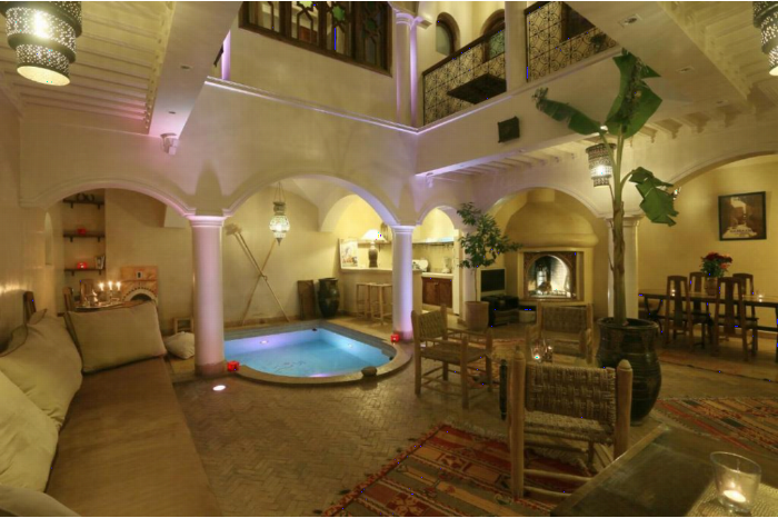 LiggingRiad L'Emir ligt in de medina van Marrakech, in het Kennaria / Kenaria-district, op slechts zo'n 200-250 meter van het Jemaa el-Fna plein en dichtbij het Bahia Paleis. De ligging is ideaal voor wie zowel de rust wil in de riad als gemakkelijk de souks, cafés en bezienswaardigheden te voet wil bereiken. De luchthaven Menara ligt op zo'n 15 minuten rijden.HotelfaciliteitenDe riad biedt zes kamers, elk met airconditioning, eigen badkamer en moderne voorzieningen als flatscreen tv en wifi. De riad beschikt over een 24-uurs receptie, een majordome (bediende) om te helpen bij uitstapjes of dagelijkse zaken, bagageopslag en transfer naar de luchthaven op verzoek.KamersElke kamer is uniek ingericht, vaak met tadelakt-wanden in verschillende kleuren (rood, geel, blauw etc.), uitzicht op de patio of het zwembad. De badkamers zijn ruim en voorzien van bad of bad/douche combinatie, toilet, föhn. Er is aandacht voor comfort: goede bedden, verwarming/airconditioning, kluisje, moderne afwerking, ontspanningsmogelijkheid in de kamer zoals zitgedeeltes in sommige kamers.Sport/entertainmentHet is geen groot resort met vele sportfaciliteiten; het aanbod is gericht op ontspanning. Je kunt relaxen op het dakterras, genieten van rust in de patio, en de riad helpt met het organiseren van wandelingen of uitstapjes. Voor wie meer wil doen: toegang tot lokale attracties en activiteiten buiten de riad is makkelijk geregeld via de receptie.Eten en drinkenOntbijt wordt in de riad geserveerd, met huisgemaakte producten en lokale smaken. Voor lunch en diner kun je gebruik maken van de tafel d'hôte op reservering, waar traditionele Marokkaanse gerechten zoals tajine, couscous etc. op de kaart staan. Er is ook een restaurant / eetgedeelte bij het zwembad/ in de patio, en 's avonds wordt er een sfeervol diner geboden. Drankjes kun je krijgen in de bar/lounge of bij de poolkant.