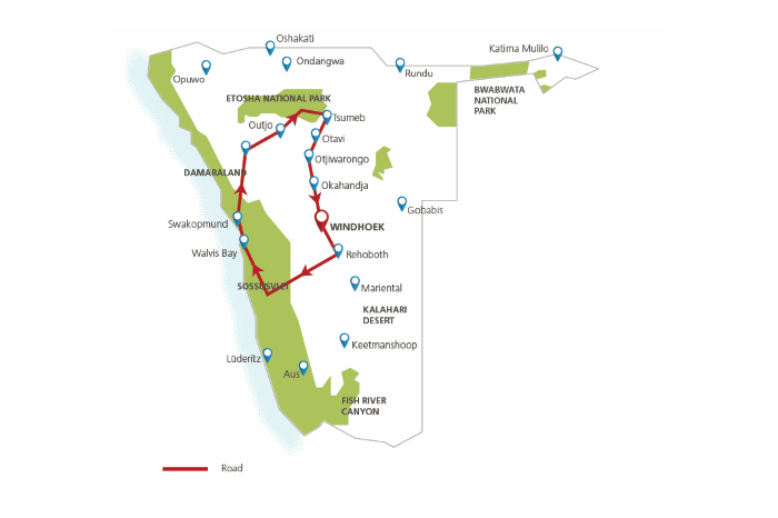De afwisselende natuur in Namibië is verbazingwekkend! De uitgestrekte Kalahari woestijn, de Namib woestijn met als hoogtepunt de Sossusvlei, Swakopmund met de lange zandstranden en natuurlijk de kleurrijke zoutpan Etosha; nergens zijn de landschappen zo overweldigend als in Namibië. Een prachtige reis voor de natuurliefhebber van eindeloze landschappen gecombineerd met wildlife.