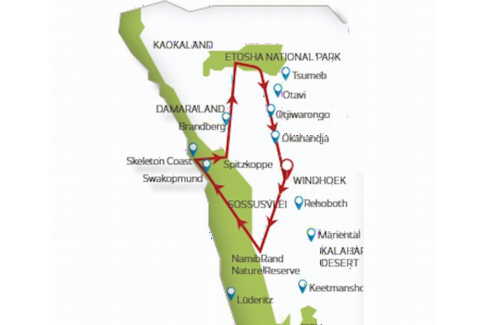 Ga met ons mee op een 14-daagse rondreis vol contrasten en verwondering, dwars door het betoverende Namibië. U begint in de levendige hoofdstad Windhoek, waar een eerste kennismaking met het land wordt bekroond met een sfeervol diner bij Joe's Beerhouse. Daarna wacht de uitgestrekte Namibwoestijn, waar u twee dagen lang wordt omringd door surrealistische landschappen, eindeloze zandduinen en een sterrenhemel die u nooit meer zult vergeten.Via de levendige kustplaats Swakopmund, een mix van Duitse charme en avontuurlijke mogelijkheden, reist u langs de ruige Skeleton Coast naar het indrukwekkende Spitzkoppe-massief. Hier zorgen grillige rotsformaties en vurige zonsondergangen voor onvergetelijke fotomomenten. De reis eindigt in stijl met eeuwenoude rotstekeningen bij de Brandberg en een safari door het beroemde Etosha National Park, waar u oog in oog kunt komen te staan met olifanten, leeuwen en giraffen.Een reis voor wie houdt van pure natuur, weidse stilte en het onverwachte.