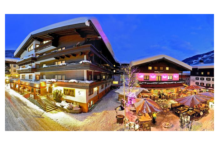 Het luxueuze 4-sterren superior hotel eva Village ligt in het centrum van Saalbach, op slechts 80 meter van de dichtstbijzijnde berglift Bernkogel.