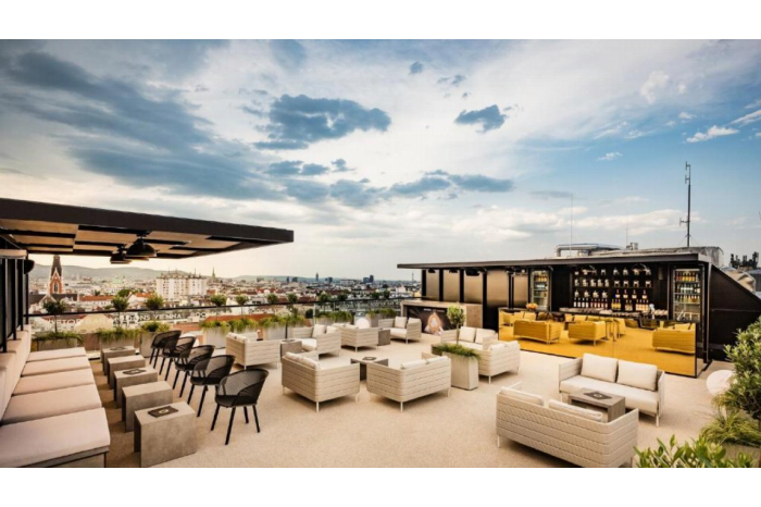 MOOONS Hotel Vienna ligt op een toplocatie, direct naast het Hauptbahnhof, waardoor je binnen enkele minuten het historische centrum bereikt. Ideaal voor een stedentrip vol cultuur, gastronomie en architectuur. Het hotel zelf ademt design en comfort: van de futuristische lobby tot de stijlvolle kamers met panoramisch uitzicht over de stad. Begin je dag met een uitgebreid ontbijt in het restaurant, relax in de groene binnentuin of geniet van een cocktail op het rooftop terras met uitzicht op de skyline van Wenen. Voor de actieve reiziger is er een moderne fitnessruimte en voor de fijnproever een menu vol lokale en internationale smaken. MOOONS is de perfecte uitvalsbasis voor wie Wenen wil ontdekken in stijl.