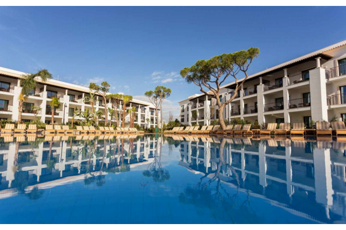 LiggingDit hotel ligt midden in het centrum van Praia da Falesia. HotelfaciliteitenHet vriendelijke personeel aan de receptie is graag bij alle vragen behulpzaam. Het voorzieningenaanbod van het hotel bevat een bagagedepot, een kluis en een geldautomaat. In de openbare ruimtes (kosteloos) is Wi-Fi verkrijgbaar. Een lift en faciliteiten voor rolstoelgebruikers zijn voorhanden. Naast een supermarkt zijn andere winkels voorhanden. Op het terrein van het verblijf bevinden zich een mooie tuin en een fraaie speelplaats. Tot de overige voorzieningen van het hotel behoren een tv-ruimte en een speelkamer. De gasten die met de auto komen, kunnen in een garage of op de parkeerplaats (kosteloos) parkeren. Onder de beschikbare voorzieningen bevinden zich een 24-uurs beveiligingsdienst, een oppasservice, een kinderopvang, een autoverhuur, een medische dienst, een transferservice, roomservice, een wasservice, een kapper, een muntwasserette en een eigen shuttlebus. De omgeving kan door de aanwezigheid van de fietsverhuur ook op de fiets worden verkend. Er liggen dagbladen (gebruik tegen betaling). In het zakelijke gedeelte (businesscenter) zijn fax en projector voorhanden. KamersAirconditioning en een verwarming zorgen voor een prettig luchtklimaat in de kamers. Tot de basisuitrusting van de meeste kamers behoort een balkon. De kamers beschikken over een kingsize bed en een slaapbank. Het is ook mogelijk om aparte slaapkamers te boeken. Voor de jongste gasten staan kinderbedjes klaar. Bovendien zijn een kluis en een minibar beschikbaar. Een kitchenette met een thee-/koffiezetapparaat wordt ook aangeboden. Verder kunnen de gasten gebruikmaken van een wasmachine en een broekenpers. Bovendien zijn een telefoon, een televisie en Wi-Fi (kosteloos) beschikbaar. Tot de extra´s van de kamers behoren pantoffels. In de badkamer, van een douche en een bad voorzien, vinden de gasten een föhn en badjassen. Rolstoelvriendelijke kamers kunnen worden geboekt. Het hotel beschikt over gezinskamers en niet-rokerskamers.Sport/entertainmentNaast binnen- en buitenzwembaden is er een zone met kinderzwembaden. Verfrissende drankjes bij de zwembadbar/snackbar en aangename ontspanning in de whirlpool brengen alle waterratten in vervoering. Echt optimaal van de vakantie genieten kan op het zonneterras met ligstoelen en parasols. Sportieve afwisseling wordt geboden door de vele verschillende activiteiten die in het verblijf worden aangeboden zoals fietsen/mountainbiken, tennis, basketbal, midgetgolf, golfen en putting green. Met snorkelen, duiken en aquafitness is het hotel ook aantrekkelijk voor watersportliefhebbers. De gasten in het hotel beschikken over vele indoorsportmogelijkheden zoals bijvoorbeeld de fitnessstudio, tafeltennis, biljart, darts, bowling en yoga. In het verblijf worden diverse wellnessaanbiedingen zoals bijvoorbeeld spa, sauna, een schoonheidssalon en massagebehandelingen aangeboden. Een miniclub, livemuziek, een disco en een nachtclub garanderen volop recreatieplezier.  Eten en drinkenEen restaurant, een koffiehuis en een bar behoren tot de culinaire faciliteiten. Verfrissende drankjes aan de strandbar staan garant voor feelgood momenten. Er kan halfpension worden geboekt. Voor de grote honger en de kleine trek is er keuze uit ontbijt, middagmaaltijd en diner. Dieetgerechten en kindermenu's worden op aanvraag bereid. Bovendien zijn speciale menu's en snacks verkrijgbaar. CreditcardsDe volgende creditcards worden geaccepteerd: American Express, Visa en MasterCard.