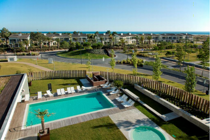 LiggingDit appartementencomplex bevindt zich in Troia, direct aan het strand. HotelfaciliteitenHet vriendelijke personeel aan de receptie is graag bij alle vragen behulpzaam. Tot het serviceaanbod behoren een bagagedepot, een kluis en een geldautomaat. Via Wi-Fi hebben de gasten toegang tot het internet (kosteloos). Het complex beschikt over meerdere voor gehandicapten toegankelijke vrijetijdsbestedingen. Het verblijf beschikt over faciliteiten voor rolstoelgebruikers en een lift. Een supermarkt en andere winkels zijn voorhanden om heerlijk te winkelen of te flaneren. Op het terrein van het complex bevinden zich een mooie tuin en een fraaie speelplaats. Tot de overige voorzieningen van het complex behoren een speelkamer en een bibliotheek. De gasten die met de auto komen, kunnen in een garage of op de parkeerplaats parkeren. Onder de beschikbare voorzieningen bevinden zich een 24-uurs beveiligingsdienst, een oppasservice, een kinderopvang, roomservice, een wasservice en een muntwasserette. Om de omgeving te verkennen, biedt de fietsverhuur de noodzakelijke uitrusting. Bij het zakendoen kan van het businesscenter gebruik worden gemaakt en staat een fax ter beschikking. KamersAirconditioning en een verwarming zorgen voor een prettig luchtklimaat in de kamers. De gasten kunnen vanaf het balkon of het terras van het uitzicht op zee genieten. Er zijn aparte slaapkamers aanwezig. Bovendien zijn een kluis, een minibar en een bureau beschikbaar. In de kitchenette bevinden zich een koelkast en een magnetron. Een telefoon, een flatscreen-tv met satellietzenders en Wi-Fi (kosteloos) ronden het serviceaanbod af. In de badkamer, van een douche en een bad voorzien, vinden de gasten een föhn en een telefoon. Bovendien zijn rolstoelvriendelijke kamers met een barrièrevrije badkamer te boeken. Het verblijf beschikt over gezinskamers en niet-rokerskamers.Sport/entertainmentNaast binnen- en buitenzwembaden is er een zone met kinderzwembaden. Ligstoelen en parasols garanderen rustgevende uurtjes. De whirlpool in de zone met zwembaden biedt de nodige rust en ontspanning. Sportieve afwisseling wordt geboden door de vele verschillende activiteiten die in het appartementencomplex worden aangeboden zoals fietsen/mountainbiken, tennis, beachvolleybal, golfen en putting green. Tot het strand- en watersportaanbod behoort duiken. Een fitnessstudio en biljart maken deel uit van het sport- en recreatieaanbod van het complex. In het verblijf worden diverse wellnessaanbiedingen zoals bijvoorbeeld spa, sauna, hamam, een schoonheidssalon en massagebehandelingen aangeboden. Een miniclub en een casino bieden mogelijkheden tot vrijetijdsbesteding.  Eten en drinkenEr is een koffiehuis voorhanden. Een lekker ontbijt bezorgt energie voor het begin van de dag. Indien gewenst worden ook kindermenu's bereid. CreditcardsDe volgende creditcards worden in het complex geaccepteerd: Visa, AMEXCO, Diners Club en MasterCard.