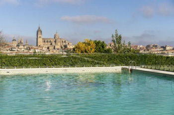 De Parador de Salamanca ligt op de linkeroever van de Tormes rivier, tegenover het historische stadscentrum. Het is een modern gebouw met ramen die uitzicht bieden op de meest iconische bouwwerken van Salamanca. Ook als je relaxed in de tuin of een duik neemt in het buitenzwembad kun je genieten van dit prachtige uitzicht.