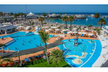 LiggingDit moderne hotel ligt direct bij een kleine baai, in het hart van de regio Playa de las Americas. Het ligt in het resort Costa Adeje (de omgeving van San Eugenio), op slechts enkele minuten wandelen van het stadscentrum en vele winkels en entertainmentcentra. De jachthaven van Puerto Colon is te voet in slechts enkele minuten te bereiken. Het strand van resort, Playa Troya, ligt op slechts 25 minuten wandelen. De aansluitingen op het openbaar vervoer liggen op slechts 500 meter afstand. De luchthaven Tenerife Zuid ligt op 17 km afstand. HotelfaciliteitenHet aparthotel biedt op 7 verdiepingen 40 suites en 189 appartementen die met een lift bereikbaar zijn. Aan de receptie is het in- en uitchecken altijd mogelijk. Het verblijf is ingericht met een bagagedepot en een drankenautomaat. Via Wi-Fi hebben de gasten toegang tot het internet. De tourdesk biedt ondersteuning bij het boeken van excursies. Op het terrein van het hotel bevinden zich een mooie tuin en een fraaie speelplaats. Tot de overige voorzieningen van het verblijf behoren een tv-ruimte, een speelkamer en een bibliotheek. De gasten die met de auto komen, kunnen in een garage of op de parkeerplaats parkeren. Onder de beschikbare voorzieningen bevinden zich een oppasservice, een kinderopvang, een autoverhuur, een medische dienst, een wasservice en een muntwasserette. De omgeving kan door de aanwezigheid van de fietsverhuur ook op de fiets worden verkend. Ter ondersteuning van het zakendoen is een fax voorhanden. KamersIn de kamers is airconditioning voorhanden. De gasten kunnen vanaf het balkon of het terras van het uitzicht op zee genieten. Er zijn aparte slaapkamers aanwezig. Voor de jongste gasten staan kinderbedjes klaar. Waardevolle spullen kunnen veilig in een kluis worden opgeborgen. In de kitchenette bevinden zich een koelkast, een magnetron en een thee-/koffiezetapparaat. Bovendien zijn een telefoon met directe buitenlijn, een tv met satelliet-/kabelontvangst en Wi-Fi (kosteloos) beschikbaar. De badkamers zijn uitgerust met een douche en een bad. Voor het dagelijks gebruik zijn een föhn, een make-upspiegel en badjassen verkrijgbaar. Het aparthotel beschikt over gezinskamers en niet-rokerskamers.Sport/entertainmentHet zwemcomplex met buitenbaden en zone voor kinderen is geschikt voor actieve ontspanning en aquarobicstrainingen. Daarnaast brengen verkwikkende drankjes aan de zwembadbar/snackbar en een waterglijbaan alle waterratten in de allerbeste stemming. Echt optimaal van de vakantie genieten kan op het zonneterras met ligstoelen en parasols. Wie lekker wil bewegen, kan van fietsen/mountainbiken, tennis en golfen genieten. Met waterskiën, jetskiën, bananenboot varen en zeilen voelen zich ook watersportliefhebbers helemaal op hun gemak. Het hotel beschikt over een groot sportaanbod in het binnengedeelte zoals bijvoorbeeld darts en tegen betaling tafeltennis, biljart en squash. Tot het wellnessaanbod van het verblijf behoren een spa en een zonnebank. Een animatieprogramma, een miniclub, een minidisco en livemuziek garanderen volop recreatieplezier. Eten en drinkenEen restaurant, een koffiehuis en een bar behoren tot de culinaire faciliteiten. Het aparthotel biedt een breed scala aan mogelijkheden op het gebied van eten en drinken aan. Te boeken zijn halfpension en volpension. De all-inclusive gasten genieten van voordelen zoals snacks, bovendien zijn een keuze uit alcolholvrije dranken en een gratis vulling van de minibar voorhanden. Bij het ontbijt, de lunch en het diner genieten de gasten van een lekker en uitgebreid buffet. CreditcardsDe volgende creditcards worden geaccepteerd: Visa en MasterCard.