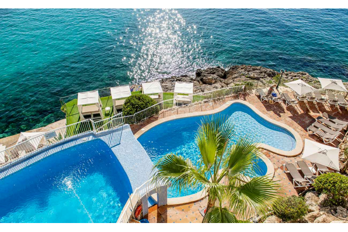 LiggingDit vakantieoord maakt grote indruk door haar voortreffelijke ligging. Het hotel ligt gelijk aan de zee met een heerlijk panorama uitzicht over de baai van Palma de Mallorca. Naar de strandbaai zijn het slecht enkele passen via het naastgelegen park. Via trappen voor het complex kan men eveneens de zee bereiken. Het aantrekkelijke complex ligt op ongeveer 7km van Palma met zijn talrijke winkel- en amusementsmogelijkheden. Openbaar vervoer bevindt zich op slechts 150m van het appartementen complex. HotelfaciliteitenDe 124 kamers en de 72 appartementen zijn verdeeld over 4 verdiepingen en zijn met 6 liften bereikbaar. Het vriendelijke personeel aan de receptie is graag bij alle vragen behulpzaam. Het verblijf is ingericht met een bagagedepot en een kluis. In het aparthotel is Wi-Fi verkrijgbaar. De tourdesk biedt ondersteuning bij het boeken van excursies. Voor gemoedelijke stemmingen zorgt een open haard. Een supermarkt en andere winkels zijn voorhanden om heerlijk te winkelen of te flaneren. Op het terrein van het verblijf bevinden zich een mooie tuin en een fraaie speelplaats. Tot de overige voorzieningen van het hotel behoren een tv-ruimte, een speelkamer en een bibliotheek. De gasten die met de auto komen, kunnen in een garage of op de parkeerplaats parkeren. Onder de beschikbare voorzieningen bevinden zich een oppasservice, een autoverhuur, een medische dienst, roomservice, een wasservice, een muntwasserette en een eigen shuttlebus. Om de omgeving te verkennen, biedt de fietsverhuur de noodzakelijke uitrusting. Bij het zakendoen kan van het businesscenter gebruik worden gemaakt en staat een fax ter beschikking. KamersAirconditioning en een verwarming zorgen voor een aangename luchtcirculatie in de kamers. De meeste kamers hebben een balkon. Bovendien zijn een kluis, een minibar en een bureau beschikbaar. Er is een goed ingerichte kitchenette met een koelkast, een mini-koelkast, een magnetron en een thee-/koffiezetapparaat. Voor vakantiecomfort zorgen een telefoon met directe buitenlijn, een tv met satelliet-/kabelontvangst en Wi-Fi (kosteloos). In de badkamer, voorzien van een douche en een bad, zijn een föhn en een telefoon aanwezig. Het aparthotel beschikt over gezinskamers en niet-rokerskamers.Sport/entertainmentNaast binnen- en buitenzwembaden is er een zone met kinderzwembaden. Verfrissende drankjes bij de zwembadbar/snackbar en aangename ontspanning in de whirlpool brengen alle waterratten in vervoering. Ook een terras met ligstoelen en parasols is voorhanden. Wie lekker wil bewegen, kan van fietsen/mountainbiken en golfen genieten. Watersportliefhebbers kunnen zich met snorkelen en duiken vermaken. Het verblijf biedt tal van sportmogelijkheden in het indoorgedeelte aan zoals bijvoorbeeld een fitnessstudio, tafeltennis, yoga en gymnastiek en tegen betaling ook biljart. In het hotel worden diverse wellnessaanbiedingen zoals bijvoorbeeld spa, sauna, een stoombad, hamam, massagebehandelingen en een zonnebank aangeboden. Een animatieprogramma, een miniclub en livemuziek garanderen volop recreatieplezier. Eten en drinkenEr is een grote keuze uit gastronomische voorzieningen zoals bv. een niet-rokers restaurant, een koffiehuis en een bar. Verfrissende drankjes aan de strandbar staan garant voor feelgood momenten. Bij de accommodatie kunnen de gasten halfpension boeken. Bij het ontbijt en het diner wordt een afwisselend buffet samengesteld. CreditcardsHet aparthotel accepteert MasterCard als betaalmiddel.